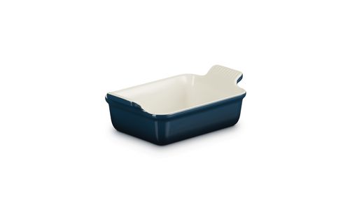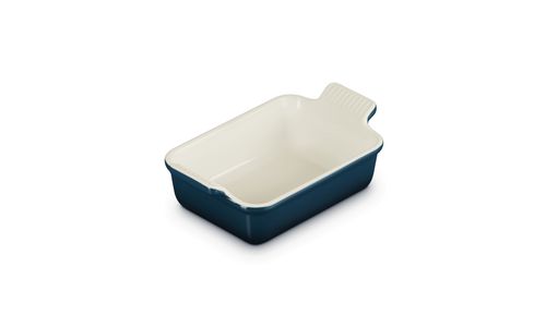 Deze ovenschaal van aardewerk is een onmisbare keukenbenodigdheid. Zijn rechthoekige vorm maakt hem geschikt voor allerlei soorten ingrediënten, waardoor hij uiterst veelzijdig is om dagelijks mee te roosteren, bakken, marineren en serveren. Dankzij de eenvoudig te hanteren geschulpte handgrepen kunt u hem veilig en moeiteloos verplaatsen en de diepe zijwanden bieden u veel kookruimte.
