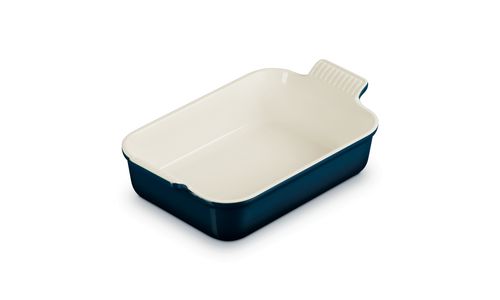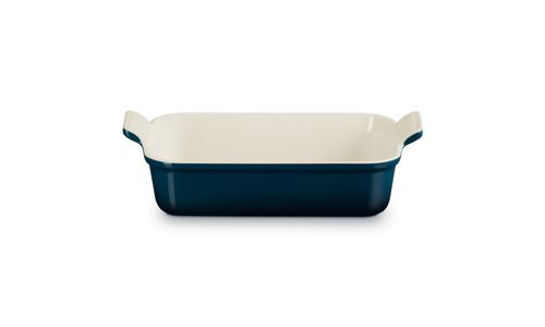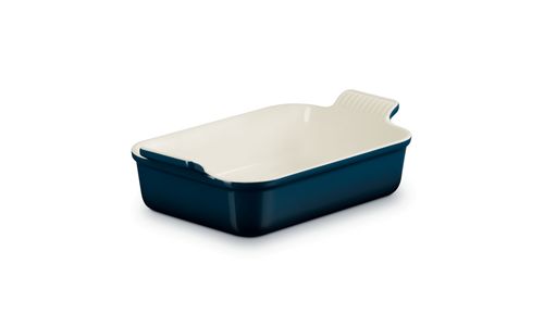 Deze ovenschaal van aardewerk is een onmisbare keukenbenodigdheid. Zijn rechthoekige vorm maakt hem geschikt voor allerlei soorten ingrediënten, waardoor hij uiterst veelzijdig is om dagelijks mee te roosteren, bakken, marineren en serveren. Dankzij de eenvoudig te hanteren geschulpte handgrepen kunt u hem veilig en moeiteloos verplaatsen en de diepe zijwanden bieden u veel kookruimte.