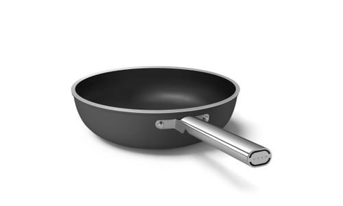 De wok is uitgerust met een lange roestvrijstalen handgreep voor een comfortabele, onmiddellijke en veilige grip.