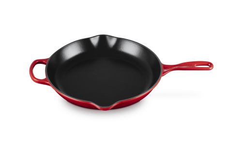 Zowel chef-koks als thuiskoks zweren bij onze karakteristieke skillet. Zijn matzwart geëmailleerde binnenkant brengt karamelliseren naar heerlijke ongekende hoogten. Deze keukenheld kan worden gebruikt op de kookplaat, onder de grill of in de oven, waardoor het een veelzijdig product is om mee te braden en bruin en krokant te bakken.