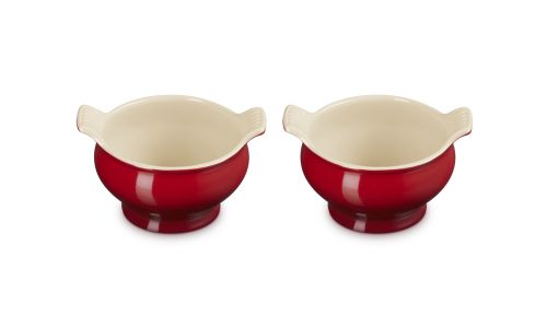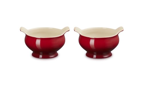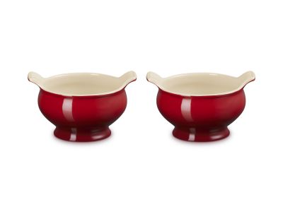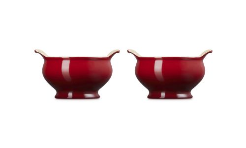 Serveer heerlijke soepen en stoofschotels voor twee, met onze set soepkommen. Ze zijn gemaakt van sterk aardewerk en kunnen in de oven worden gebuikt om een traditionele Franse uiensoep te maken. Het materiaal houdt uw voedsel bovendien langer warm als het eenmaal op tafel staat. Hij wordt gepresenteerd in een mooie doos, waardoor het een geweldig geschenk is.