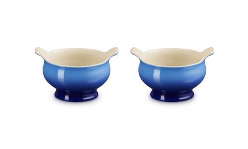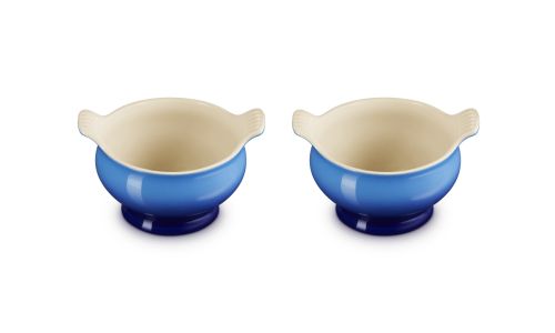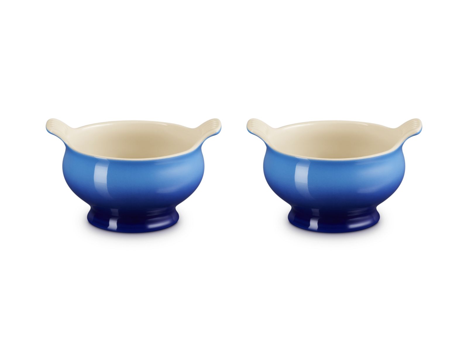 Serveer heerlijke soepen en stoofschotels voor twee, met onze set soepkommen. Ze zijn gemaakt van sterk aardewerk en kunnen in de oven worden gebuikt om een traditionele Franse uiensoep te maken. Het materiaal houdt uw voedsel bovendien langer warm als het eenmaal op tafel staat. Hij wordt gepresenteerd in een mooie doos, waardoor het een geweldig geschenk is.