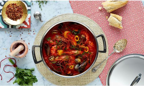 Deze 3-laagse diepe stoofpan van rvs maakt het koken van allerlei gerechten een fluitje van een cent, zoals curry en risotto, een zelfgemaakte soep of een klassieke ovenschotel. De meerlaagse constructie verspreidt de warmte zachtjes en gelijkmatig en biedt geweldige resultaten. Dankzij de glanzende, fraaie vormgeving staat hij prachtig op tafel. U kunt hem dus ook gebruiken om uw eten te serveren!