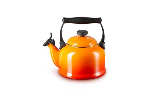 Introduceer traditionele stijl in uw keuken met deze klassieke ketel die fluit wanneer uw water klaar is. Een extra sterke bodem die geschikt is voor inductie zorgt ervoor dat uw water snel opwarmt en dankzij de ergonomische, hittebestendige handgreep kunt u gemakkelijk schenken. Hij is gemaakt van geëmailleerd staal en geeft uw huis een levendig kleurtje.