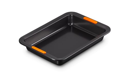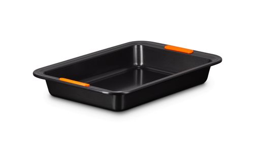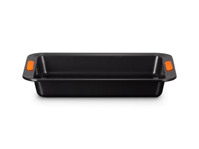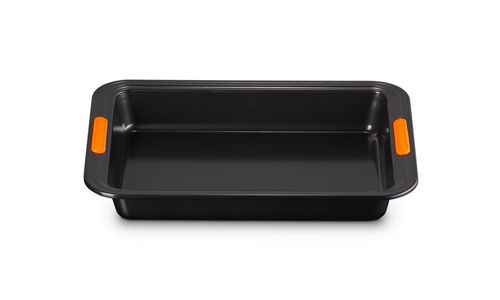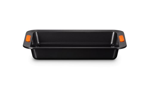 Met deze rechthoekige cakevorm is het bakken van zelfgemaakte taarten en broden een genot. De klassieke vorm maakt hem een winnaar, ongeacht uw recept. En de hittebestendige siliconen handgrepen zorgen dat u uw creaties veilig en eenvoudig in en uit de oven kunt tillen.