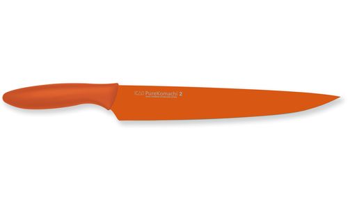 De Pure Komachi messenserie brengt kleur in het spel. Visueel vallen deze bonte messen in eerste instantie op door de kleurrijke coating. De lemmets van de serie zijn van staal in combinatie met een gekleurde anti-kleef coating, die een grote toegevoegde waarde biedt waar het gaat om het loslaten van het snijproduct van het lemmet. Elk mes in de serie heeft een eigen kleur, wat de overzichtelijkheid van de messen ten goede komt. Het ergonomische kunststof heft is altijd monochroom afgestemd op de kleur van de coating van het lemmet.