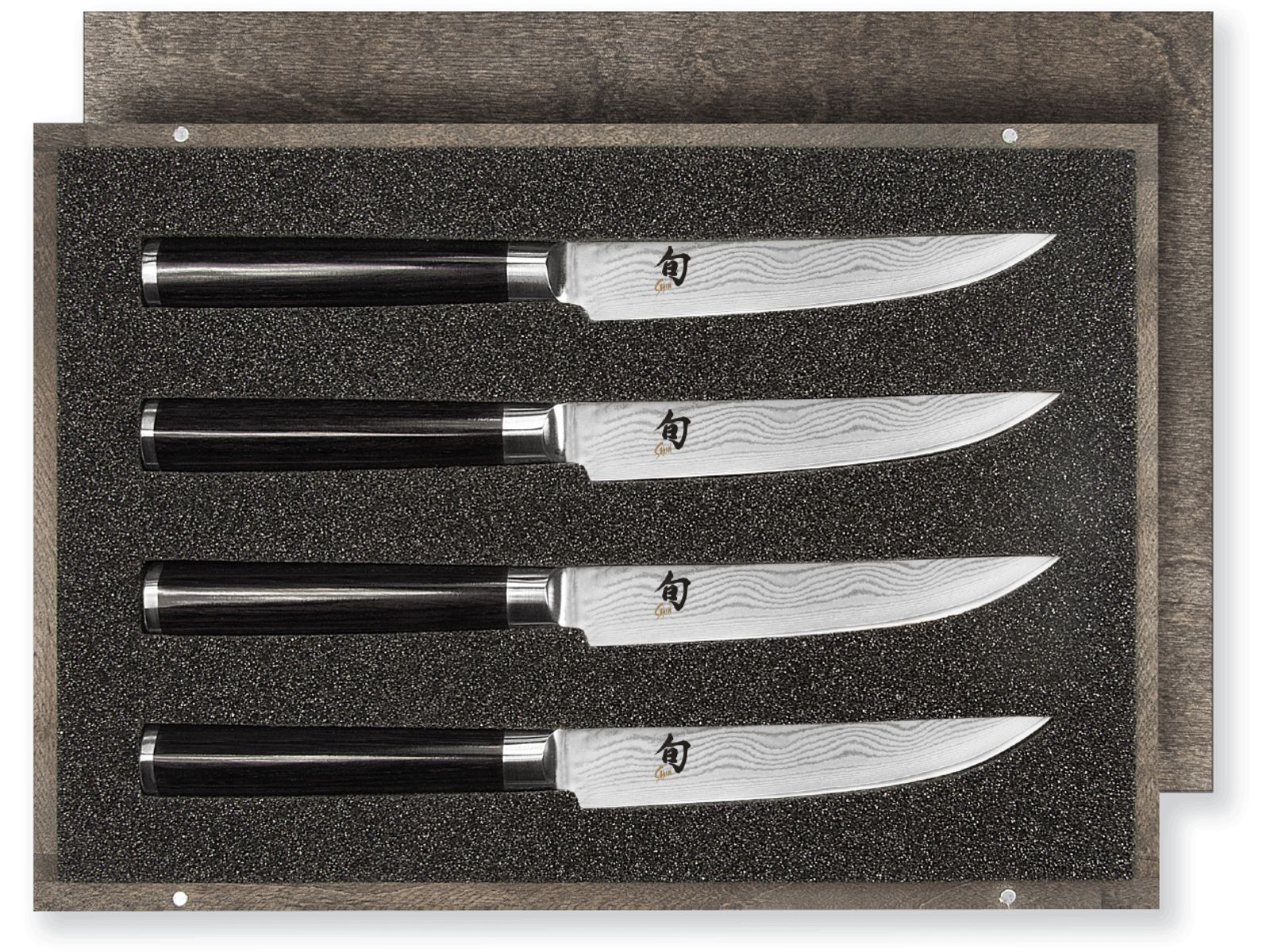 Steakmessenset | DMS-400 (inhoud 4x DM-0711) in houten cassette met magnetische sluiting 28,9 x 20,2 x 2,5 cm L/B/H