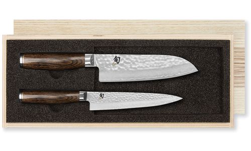 De serie Shun Premier Tim Mälzer is speciaal afgestemd op de eisen en behoeften van de professionele kok. In deze Premium serie worden de hoogwaardige materiaaleigenschappen van de bekende Shun Classic serie met een geheel nieuw, indrukwekkend totaalbeeld samengebracht. Het lemmet is verdeeld in drie verschillende texturen: van de rug van het lemmet tot aan het midden wordt handmatig een hamerslag, bekend als Tsuchime, aangebracht. Gevolgd door de voor Shun kenmerkende zacht gematteerde Damastlagen. Het lemmet wordt afgerond met de hoogglans gepolijste precisiesnede. Dit complexe en bewerkelijke lemmet wordt gecombineerd met een heft van fraai getekend bruin walnotenhout. De bijzonder harde en slijtvaste kern van het lemmet zorgt voor een extreme scherpte en langdurige snijprestaties.