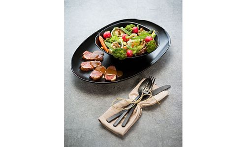 Voor wie graag een kleurenpalet aan gerechten voorschotelt, zou Vongola wel eens de beste keuze kunnen zijn. Kleurrijke culinaire creaties komen tot hun volle recht in dit zwarte aardewerken servies, omwille van het sterke contrast. De verschillende onderdelen zijn rustiek en authentiek door het gekozen materiaal, maar breken met het vertrouwde op vlak van vorm: de organische contouren zijn hier overduidelijk aanwezig.