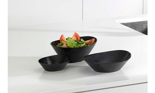 Voor wie graag een kleurenpalet aan gerechten voorschotelt, zou Vongola wel eens de beste keuze kunnen zijn. Kleurrijke culinaire creaties komen tot hun volle recht in dit zwarte aardewerken servies, omwille van het sterke contrast. De verschillende onderdelen zijn rustiek en authentiek door het gekozen materiaal, maar breken met het vertrouwde op vlak van vorm: de organische contouren zijn hier overduidelijk aanwezig.