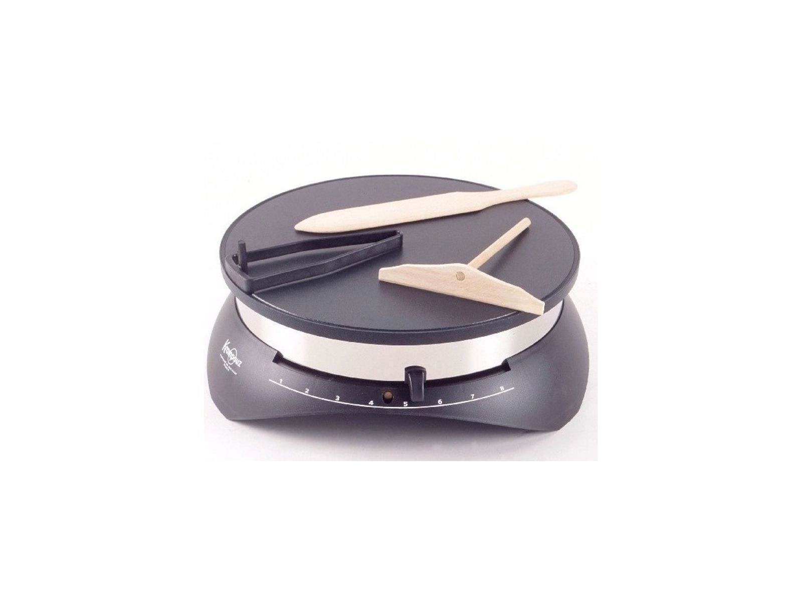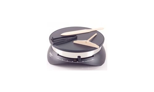 Bijgeleverde accessoires: gepatenteerde Easy Crêp' deegverspreider, pollepel voor een juiste dosering, houten spaten en houten hark, materiaal voor de reiniging, receptenboekje Pannenkoeken van over de wereld.